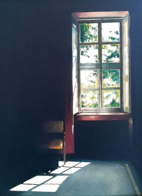 Filtrata da ampie finestre, che creano un quadro nel quadro, la luce modella gli spazi interni, così come l'approccio al mondo reale plasma la nostra interiorità.